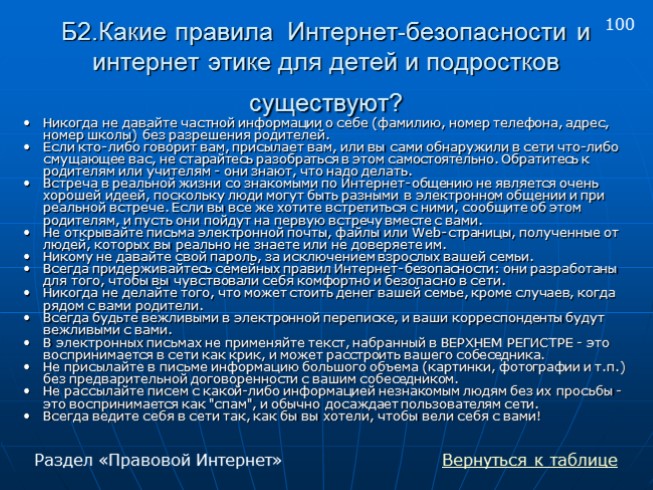 Б2.Какие правила Интернет-безопасности и интернет этике для детей и подростков существуют?