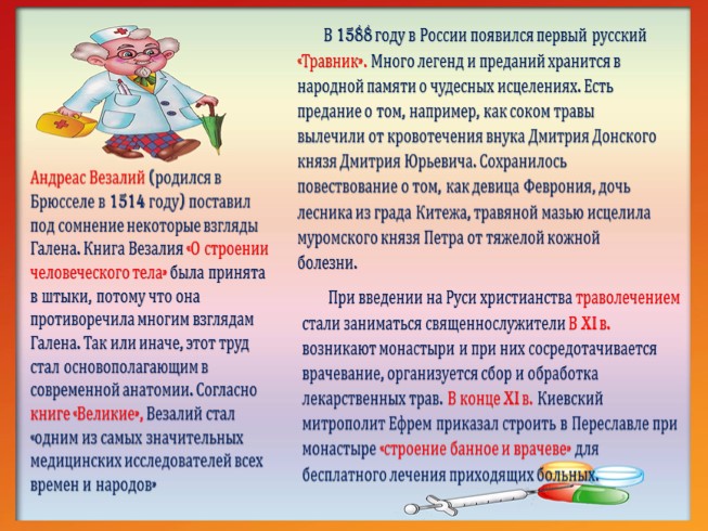 При введении на Руси христианства траволечением стали заниматься священнослужители В XI в. возникают монастыри и при них сосредотачивается врачевание, организуется сбор и обработка лекарственных трав. В конце XI в. Киевский митрополит Ефрем приказал строить в Переславле при монастыре «строение банное и врачеве» для бесплатного лечения приходящих больных.