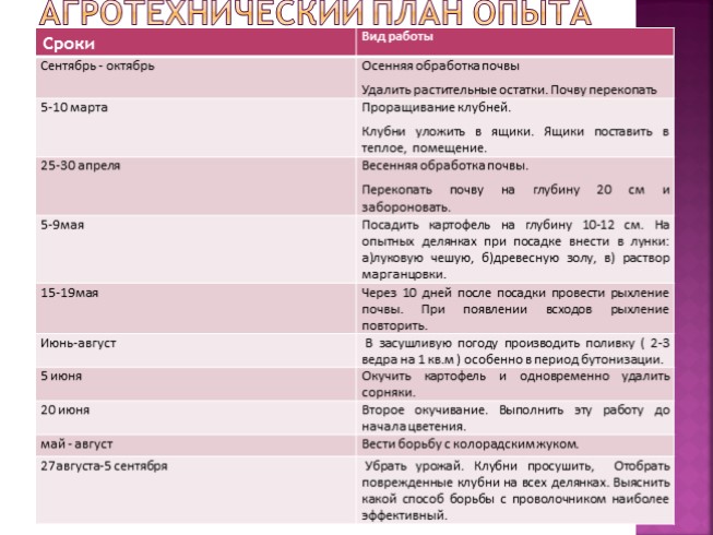 27августа-5 сентября Убрать урожай. Клубни просушить, Отобрать поврежденные клубни на всех делянках. Выяснить какой способ борьбы с проволочником наиболее эффективный.