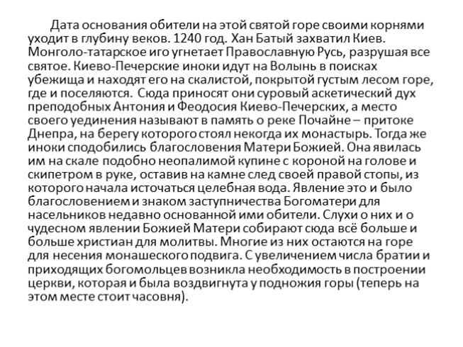Стоит на вершине Почаевской горы, Свято-Успенская Лавра – твердыня веры Христовой, обитель благочестия и подвижничества, духовный центр православного народа Западной Руси.