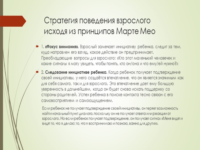 Стратегия поведения взрослого исходя из принципов Марте Мео
