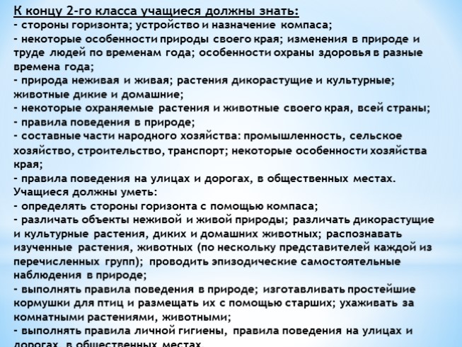 - некоторые особенности природы своего края; изменения в природе и труде людей по временам года; особенности охраны здоровья в разные времена года;