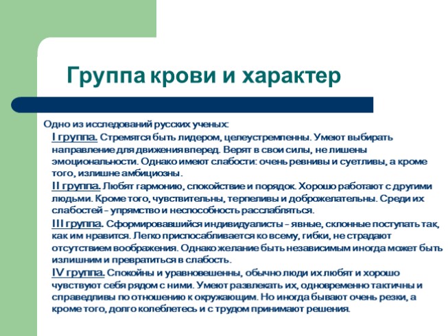 Группа крови и характер