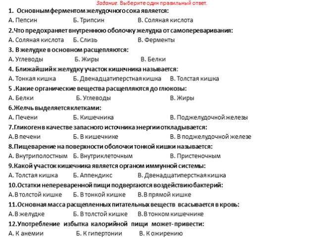 ЗАЧЁТ ПО ТЕМЕ «ПИЩЕВАРЕНИЕ»