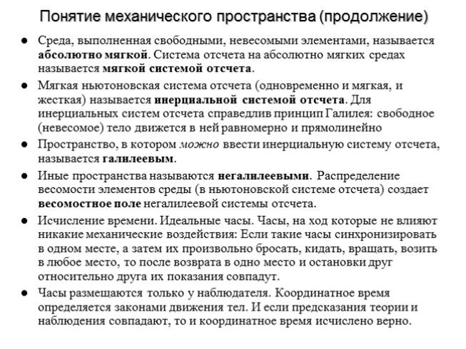 Система отсчета это прежде всего механическая среда. Ее описание содержится в описании состояний элементов и их взаимосвязей.