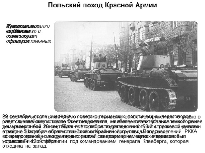 Поэтому, будучи доселе нейтральным, советское правительство не может более нейтрально относиться к этим фактам, а также к беззащитному положению украинского и белорусского населения. Ввиду такой обстановки советское правительство отдало распоряжение Главному командованию Красной армии дать приказ войскам перейти границу и взять под свою защиту жизнь и имущество населения Западной Белоруссии, Западной Украины»