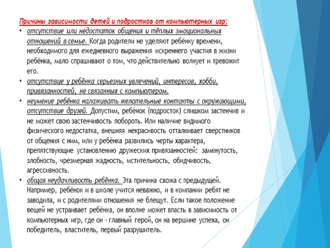 Причины зависимости детей и подростков от компьютерных игр: