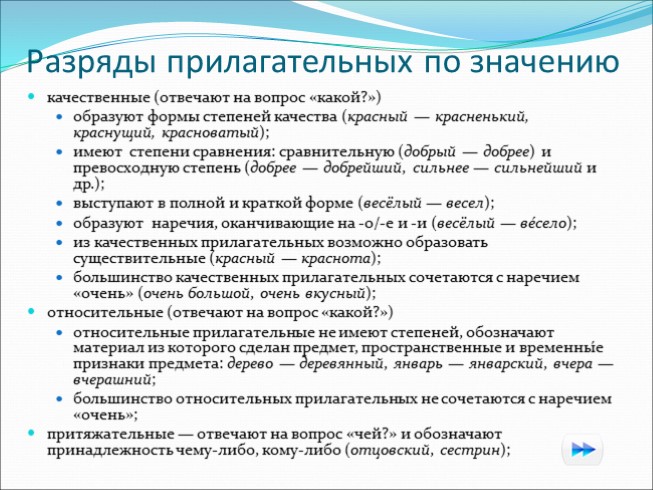 Прилагательное – обозначает признак предмета. (Какой? Каков? Чей?)
