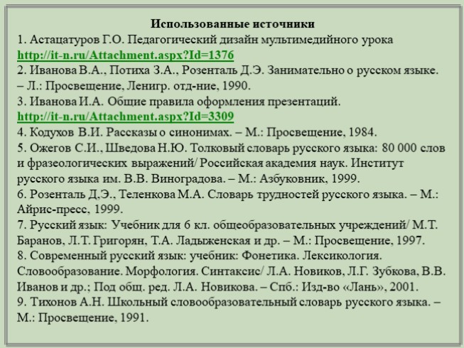 2. Иванова В.А., Потиха З.А., Розенталь Д.Э. Занимательно о русском языке. – Л.: Просвещение, Ленигр. отд-ние, 1990.
