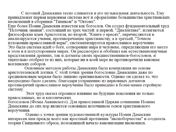 Однако с точки зрения художественной культуры Иоанн Дамаскин интересен нам прежде всего как яростный противник "иконоборчества" и создатель теории Священного образа, положившей начало канонизации иконописи.