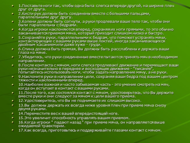 17. Руки встречают мяч низко.