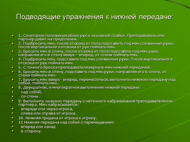 Подводящие упражнения к нижней передаче: