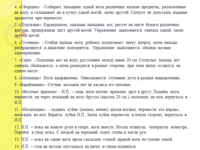 Приложение 2: Комплексы упражнений способствующих профилактике плоскостопия.