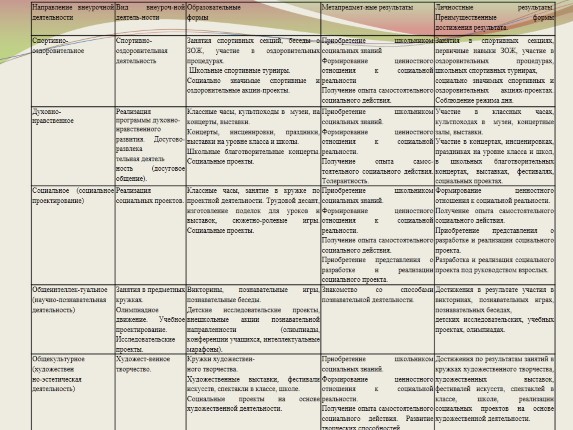 формы Метапредмет-ные результаты Личностные результаты. Преимущественные формы достижения результата.