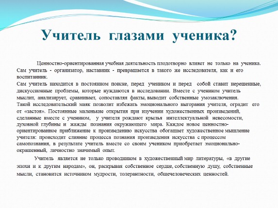 Учитель является не только проводником в художественный мир литературы, «в другие