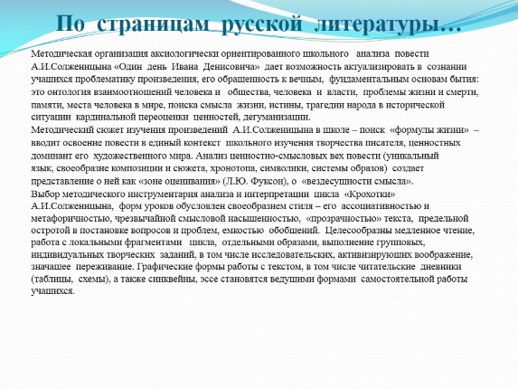 Методический сюжет изучения произведений А.И.Солженицына в школе – поиск «формулы жизни» –
