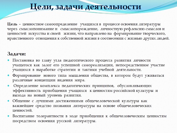 Цели, задачи деятельности
