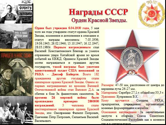 Кому вручается: Рядовой и сержантский состав Советской армии и лейтенанты авиации СССР.