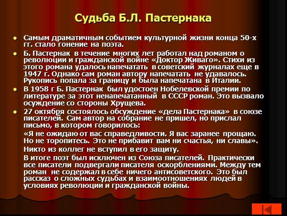 Самым драматичным событием культурной жизни конца 50-х гг. стало гонение на поэта.