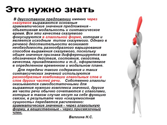 Видимо, поэтому Ф. И. Буслаев, известный лингвист, считал, что «вся сила суждения содержится в сказуемом. Без сказуемого не может быть суждения».
