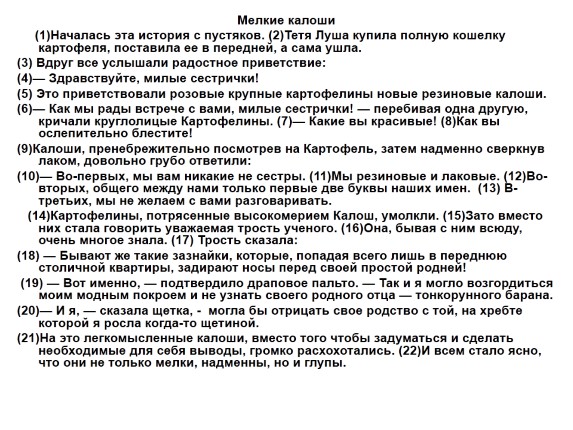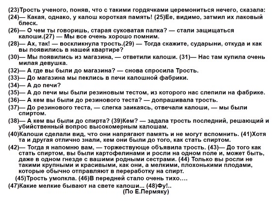 (47)Какие мелкие бывают на свете калоши... (48)Фу!.. (По Е.Пермяку)