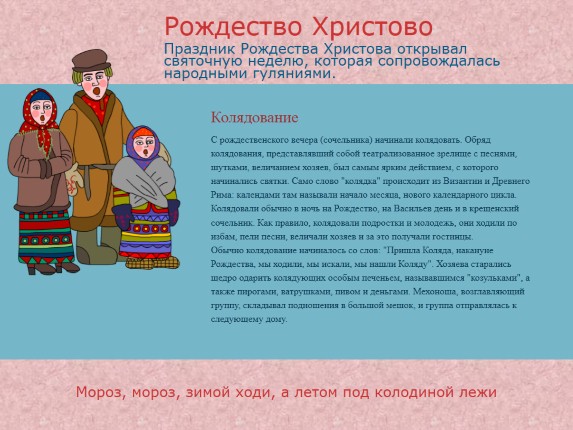 Праздник Рождества Христова открывал святочную неделю, которая сопровождалась народными гуляниями.
