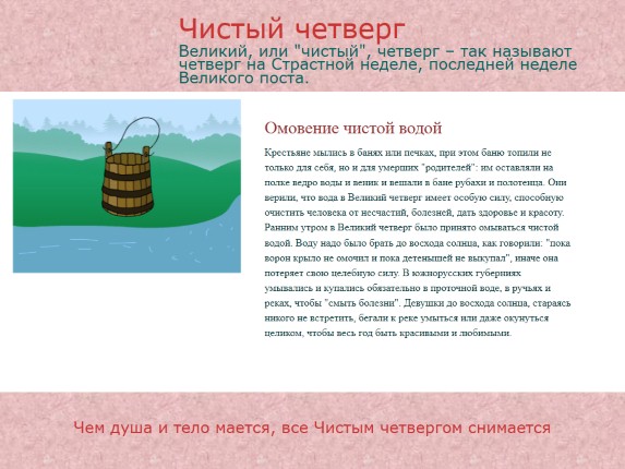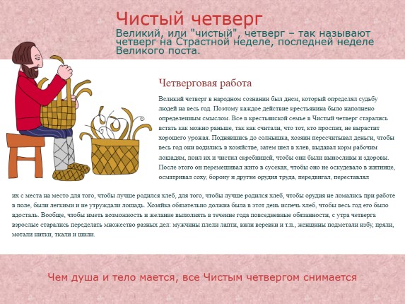 Этот день старались провести в радостном, спокойном состоянии духа. Рано утром, нарядившись в лучшую, непременно чистую, одежду, все отправлялись в церковь на службу, а после возвращения садились обедать. В этот день делалось послабление в посте и разрешалось есть рыбу.