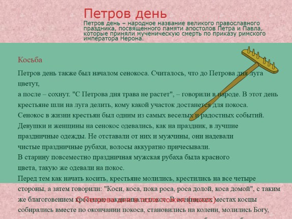 Петров день – народное название великого православного праздника, посвященного памяти апостолов Петра и Павла, которые приняли мученическую смерть по приказу римского императора Нерона.