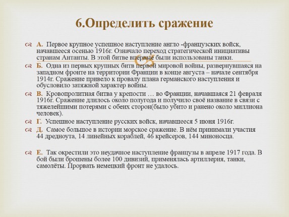 2. В Первой мировой войне принимали участие 23 страны 3. Сражения на Марне происходили в 1914 и 1918 гг.