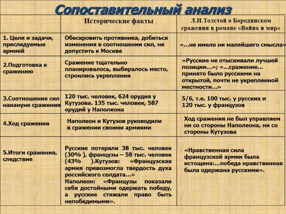 Исторические факты Л.Н.Толстой о Бородинском сражении в романе «Война и мир»