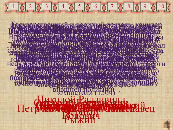 «Где и иные дорогие и также бесценные с той самой короны каменья-славные дома русских князей, драгоценные сапфиры и бесценные диаманты: князья Слуцкие, Заславские, Вишневецкие, …Ходкевичи, Пацы, Тышкевичи… »