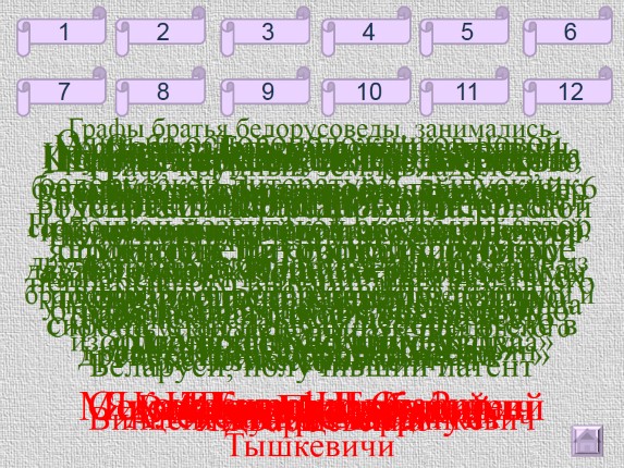 Графы братья белорусоведы, занимались изучением белорусской археологии, этнографии, фольклористики. Одним был создан первый в Беларуси исторический музей, другим – Виленский музей древности. Один из братьев стал почетным членом Петербургской и Стокгольмской академий наук, Лондонского археологического института