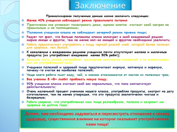 Думаю, нам необходимо задуматься и пересмотреть отношение к своему здоровью, существенное влияние на которое оказывает употребляемая нами пища!