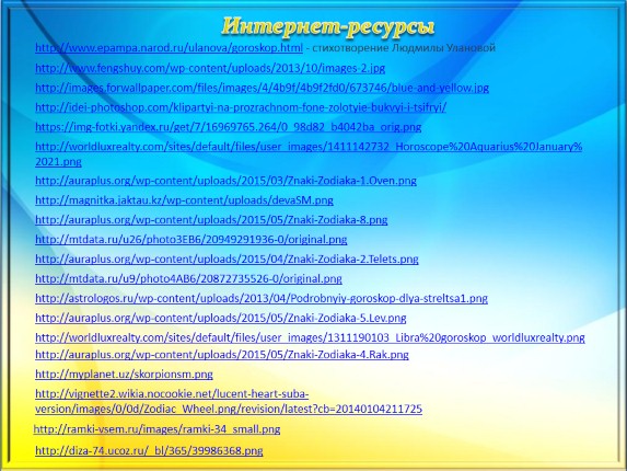 Есть в мире гороскопы всех мастей, Их обожают взрослые и дети, Лишь гороскопа для учителей Никто не сочинил на всей планете. Пора ошибку эту нам исправить И гороскоп учительский составить.