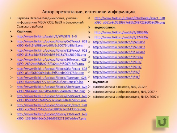 Автор презентации, источники информации