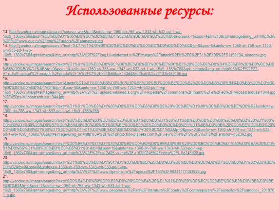 13. http://yandex.ru/images/search?source=wiz&fp=0&uinfo=sw-1360-sh-768-ww-1343-wh-533-pd-1-wp-16x9_1360x768&text=%D0%B0%D1%85%D0%BC%D0%B0%D1%82%D0%BE%D0%B2%D0%B0&noreask=1&pos=4&lr=213&rpt=simage&img_url=http%3A%2F%2Fwww.ouc.ru%2Fimg%2Fautors%2Fahmatova.jpg