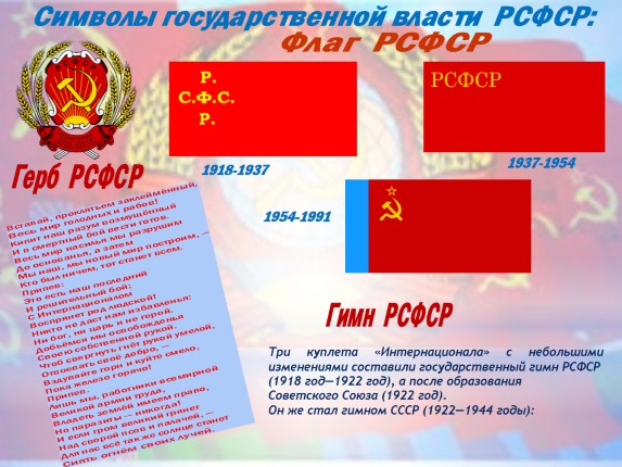 Три куплета «Интернационала» с небольшими изменениями составили государственный гимн РСФСР