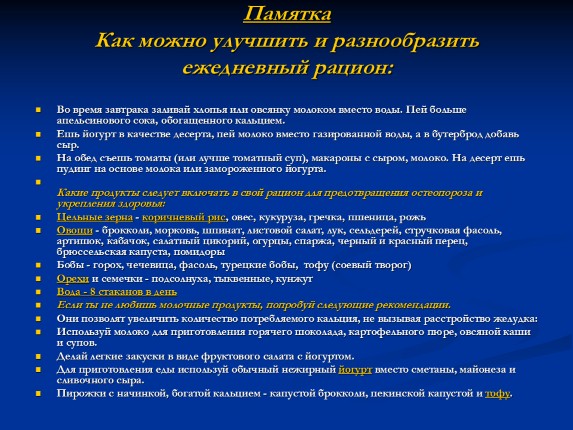 Памятка Как можно улучшить и разнообразить ежедневный рацион: