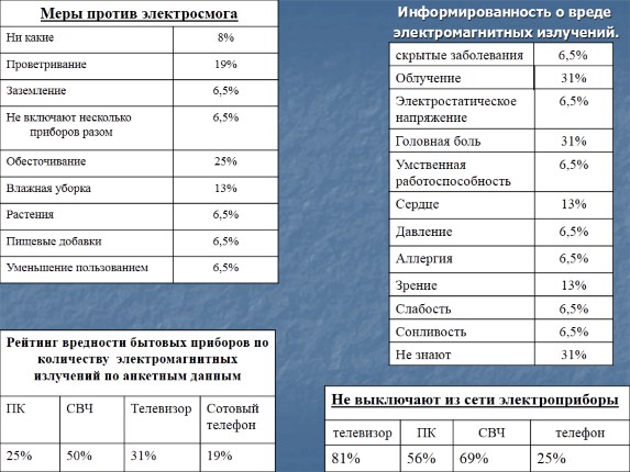 выяснила уровень информационности о вреде электромагнитных излучений среди опрошенных;