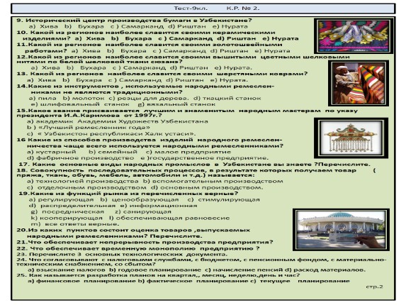 17. Какие основные виды народных промыслов в Узбекистане вы знаете ?Перечислите.