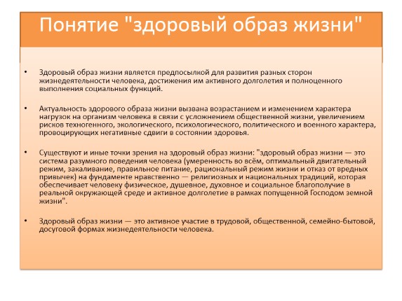 Здоровый образ жизни — это активное участие в трудовой, общественной, семейно-бытовой, досуговой формах жизнедеятельности человека.