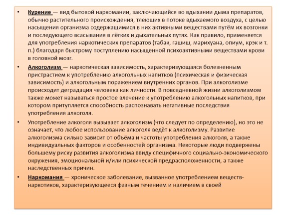 Наркомания — хроническое заболевание, вызванное употреблением веществ-наркотиков, характеризующееся фазным течением и наличием в своей