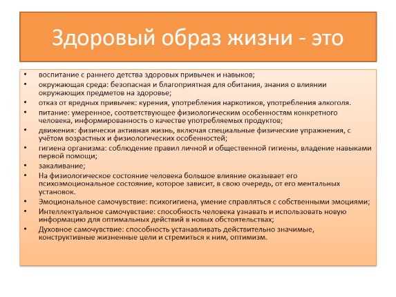 Рассмотрим подробнее базовые компоненты на основе которых, строится ведение здорового образа жизни.