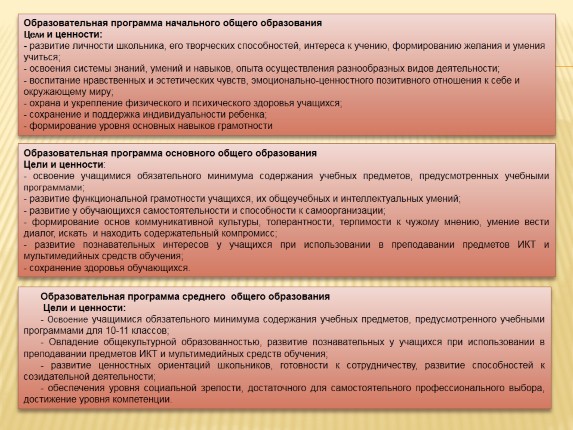 Основным предметом деятельности Образовательного учреждения является реализация общеобразовательных программ начального общего, основного общего и среднего (полного) общего образования.