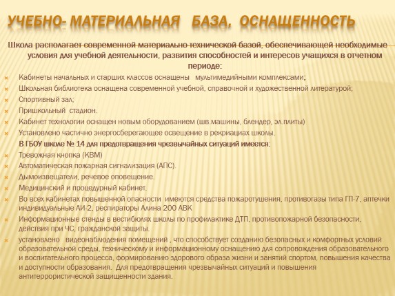За отчетный период наше образовательное учреждение укрепило свою материально-техническую базу, решило задачу обеспечения безопасности нахождения детей в учебном заведении: