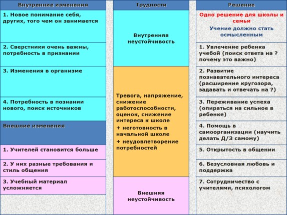 Какие изменения происходят с ребенком при переходе из начального звена в среднее?