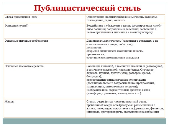 Внимание! В публицистическом стиле позиция автора выражается прямо и открыто.