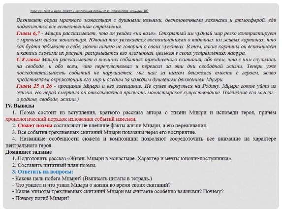 ПОЭМа «МЦЫРИ» М.Ю. ЛЕРМОНТОВА