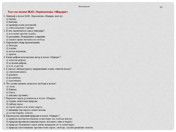 Тест по поэме М.Ю. Лермонтова «Мцыри»