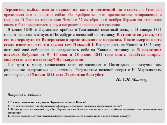 3. Какие факты из военной службы Лермонтова на Кавказе показались вам наиболее важными для понимания его личности?